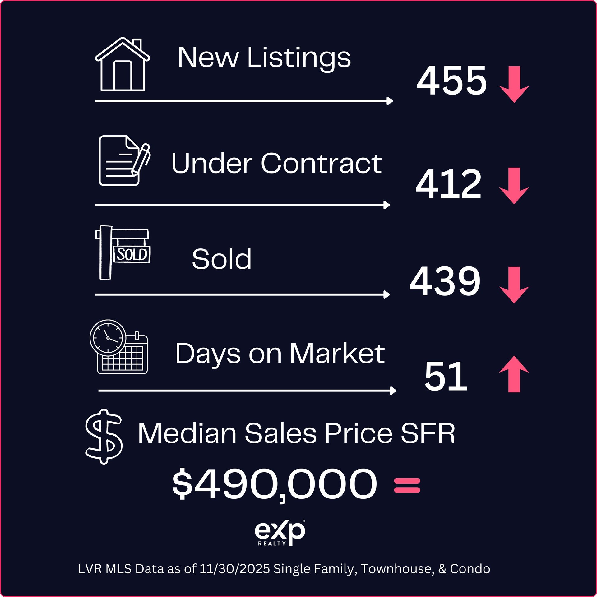 It’s also crucial to remember that these figures represent Las Vegas as a whole. Micro-markets often behave very differently. A neighborhood in Henderson may feel stable, while a community in the northwest may feel sluggish. A price point under $450K may still move quickly, while higher-end homes experience longer market times.